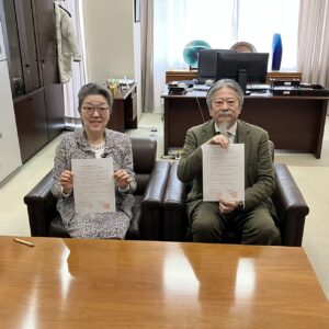2025年2月13日(木)、関西国際センター(大阪府泉南郡田尻町りんくうポート北)において、梅屋潔国際文化学研究科長と真嶋潤子関西国際センター所長により、本研究科と国際交流基金(JF)関西国際センターの連携協定書への調印がなされました。