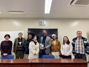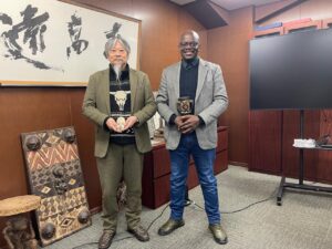 ケープタウン大学ビジネス大学院の上級講師、ミンガ・コンゴ博士が来日し、研究科長室を表敬訪問しました。コンゴ博士と梅屋研究科長とは、ケープタウン大学との二度にわたる二国間交流事業で共同研究をしてきており、その成果である2冊の論文集にともに寄稿している、大変縁の深い研究者です。同日夕刻にセミナーを実施しました。国際協力研究科からもボツワナ、ベナンからの留学生が参加し、急にきまったセミナーとしては成功裏に終わりました。
