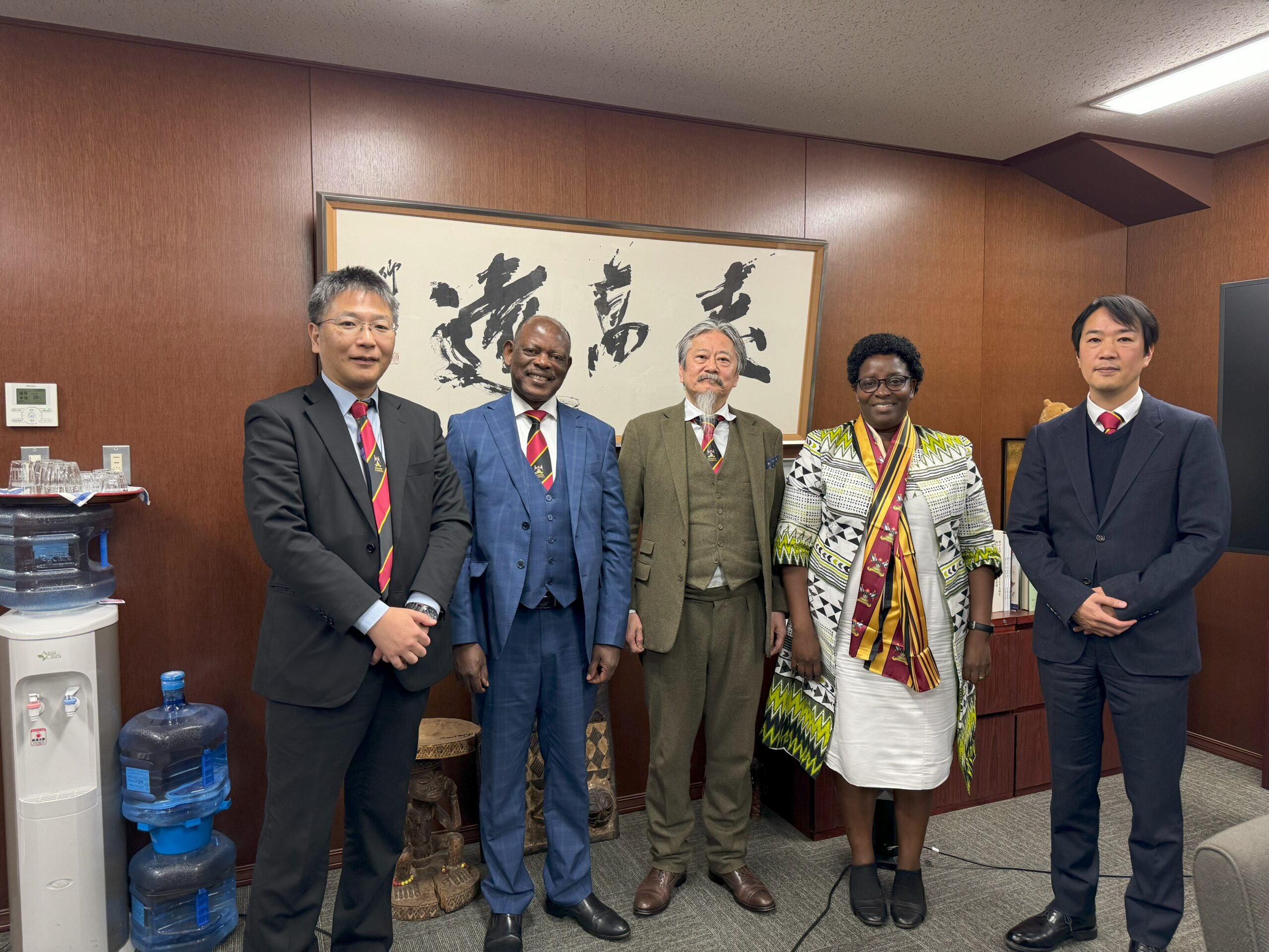 ウガンダ、マケレレ大学のVice Chancellor(副学長と訳されることもありますが、ウガンダではChancellorは長らく大統領が兼務し、現在でも儀礼的な位置づけなので事実上の学長です)、バルナバス・ナワングウェ教授と、人文社会科学学群長のヘレン・ナンバリルワ・エンカバラ准教授が研究科長室を訪問しました。研究科からは、梅屋研究科長と齋藤剛インスティテュート長、井上弘貴文化相関専攻長がお迎えし、マケレレ大学と神戸大学の学術交流について意見交換しました。現在両大学の間でMoUを準備中で、近く合意する見込みです。ナワングウェ教授は、六甲台第一キャンパスにある阪神淡路大震災の鎮魂碑も訪問し、ご自分のXでも発信されていました。