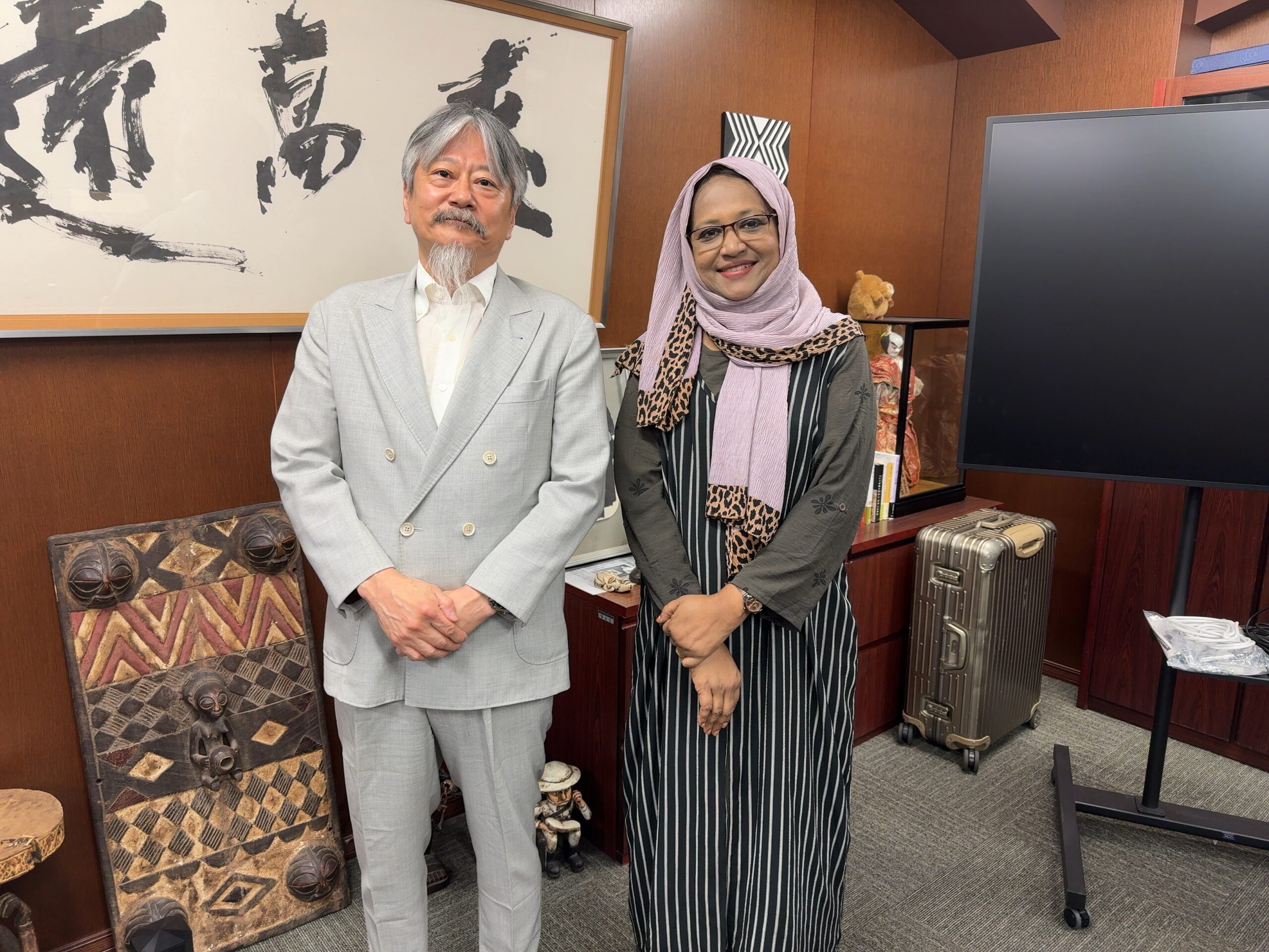 研究科長室にて 梅屋研究科長とSharmin博士