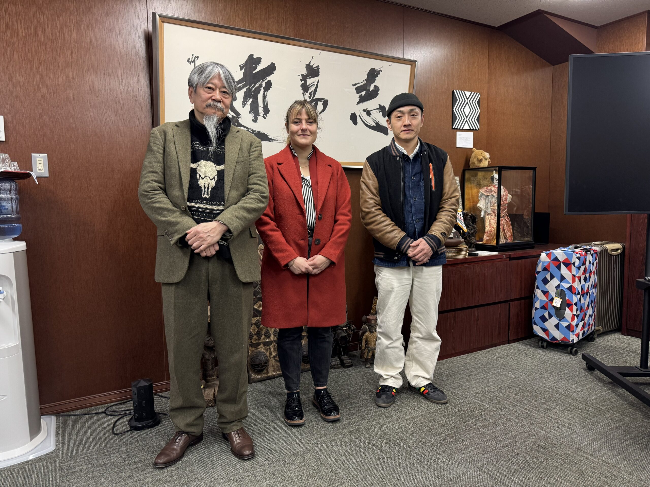 2026年1月28日、アフリカン・コンヴィヴィアリティ・センターの矢野原佑史さんに伴われて、Lucie Mizziさんが研究科長室を訪れました。Lucieさんは、フランスのポール・ヴァレリー・モンペリエ第3大学(Univeristé Paul Valéry Montpellier 3)で人類学を専攻しています。現在、大阪、兵庫のテキヤの家に住み込んでフィールドワークをしており、民博の共同研究で矢野原さんと出会ったようです。共通の研究者(テキヤの研究者)もおり、話が弾みました。成果が出たら、今度はセミナーなどをお願いしたいものです。