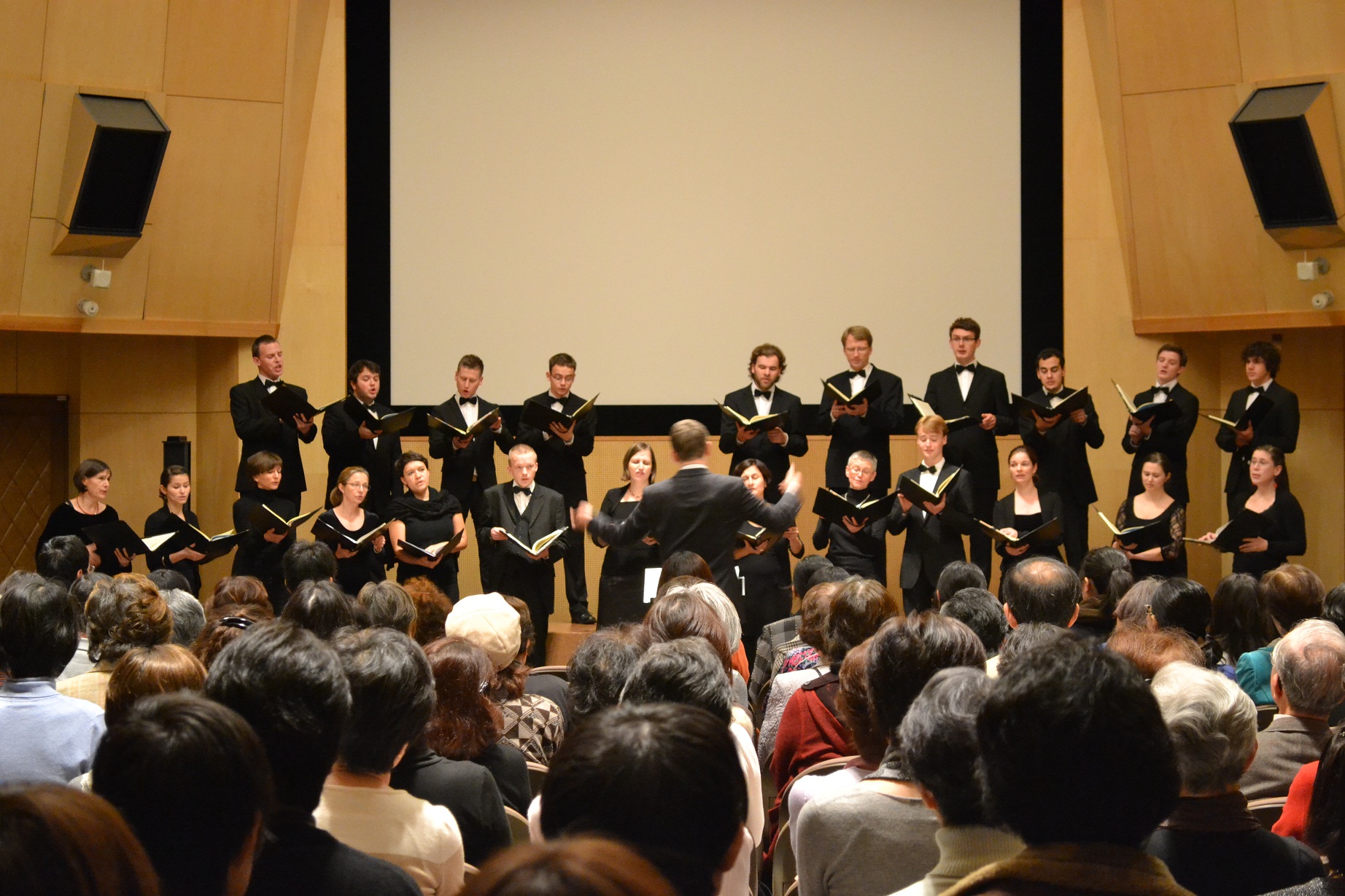 コンサート vol.18では、藤野一夫・神戸大学大学院国際文化学研究科教授による演奏作品の背景に関するレクチャーに続き、ドイツ・ドレスデンを拠点とする国際的に著名な合唱団、ザクセン声楽アンサンブルの24名が二重合唱のためのモテット《ヤハヴェよ、汝のすみかはいかに美わしく》(H.シュッツ)、同《主に向かいて新しき歌を歌え》(J.S.バッハ)などを演奏しました。神戸大学生のほか、多くの地域の方々にお越し頂き、250名超の来場者アンケートでは「鳥肌が立った」「涙が出そうになった」といった感想が多数寄せられました。