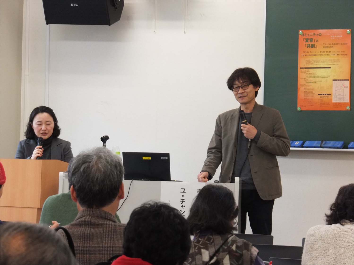 たいへんご多忙にもかかわらず、当センターおよびメディア文化研究センター研究員有志の依頼を快諾してくださったユ先生、内山先生のご講演ということで、学外からもたくさんの方にご聴講いただきました。ユ先生はパネリストからの問題提起にもわかりやすくご回答くださいました。内山先生にはフロアからも質問が集まりました。
